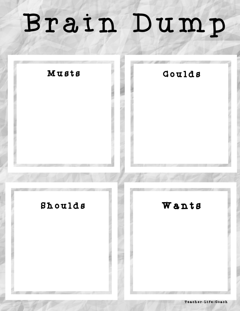 Here are three versions of a Brain Dump worksheet for you to use and enjoy (links to printable versions are below).