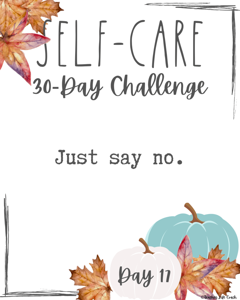 Today’s challenge is a challenge indeed. I am asking you to say “no” today to something, anything that doesn’t make your heart sing. Maybe it’s a not-so-happy feeling that’s creeping into your day. Say no to that. Maybe it’s a situation that makes you uncomfortable and doesn’t jive with you morally. Say no to that. Maybe, just maybe, it’s simply filling your schedule to the point where it is overflowing and leaves no time for you. Say no to that.