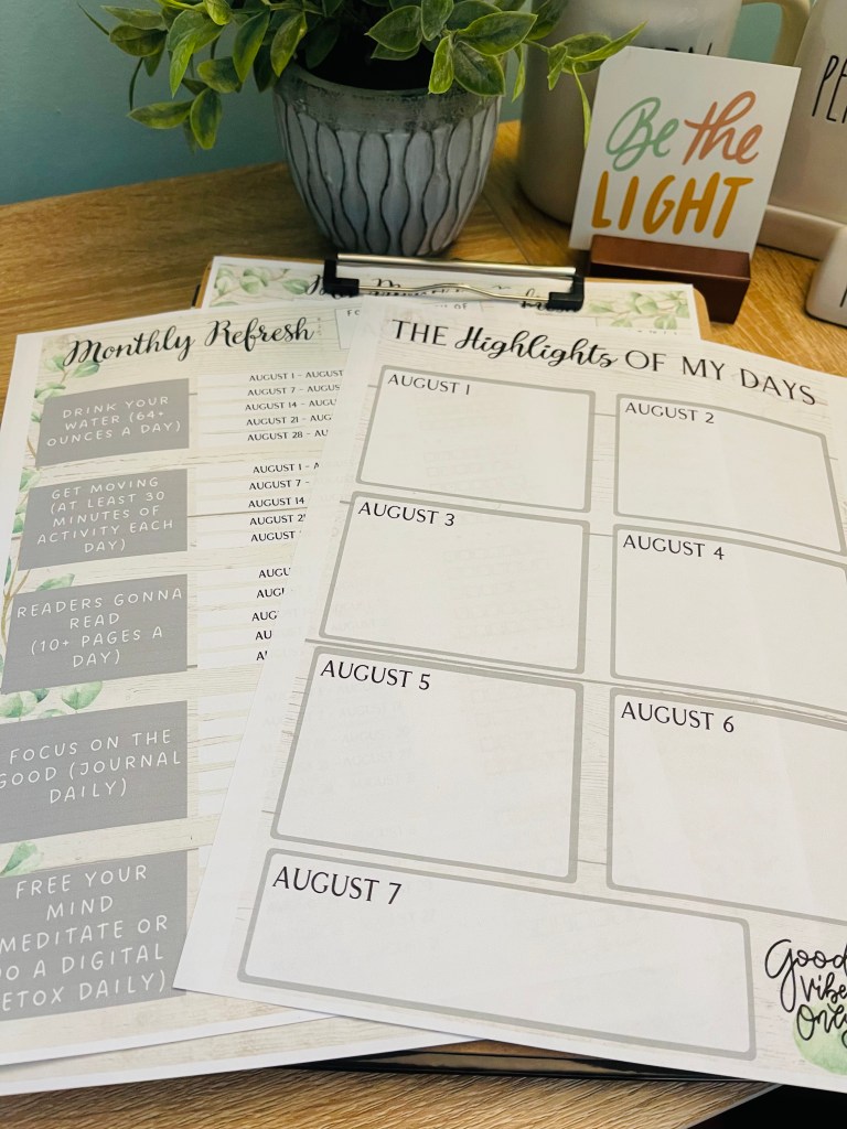 One of my favorite habits is ”focusing on the good,” and with this, I journal daily. It doesn’t have to be a lot – it just gives me a chance to reflect on my day and cherish the positives. I created a journaling page for myself titled, “The Highlights of My Days.” I LOVE this because it really does encourage me to zoom in on my day-to-day. You know, kind of like a highlights reel. And, guess what?! I am sharing the printable version with you, too, because the more we ALL focus on the good, the more good there is to focus on.